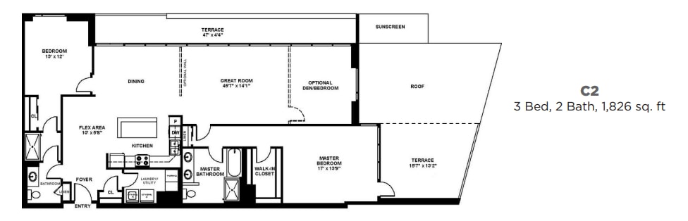 B9 - Two Bedroom Two Bath - Floorplan 2 ![]()