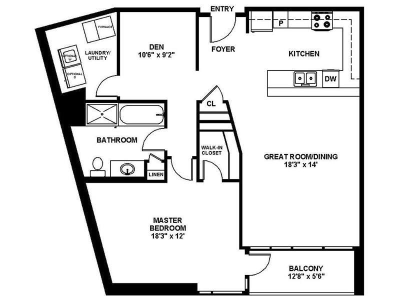 A6 - One Bedroom with Den One Bath - Floorplan 1 ![]()