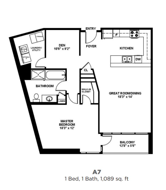Apartment Model: A7 - One Bedroom with Den One BathCall For Rates1 Bedroom, 1 Bath, 1089 sq ftUnavailable![]()