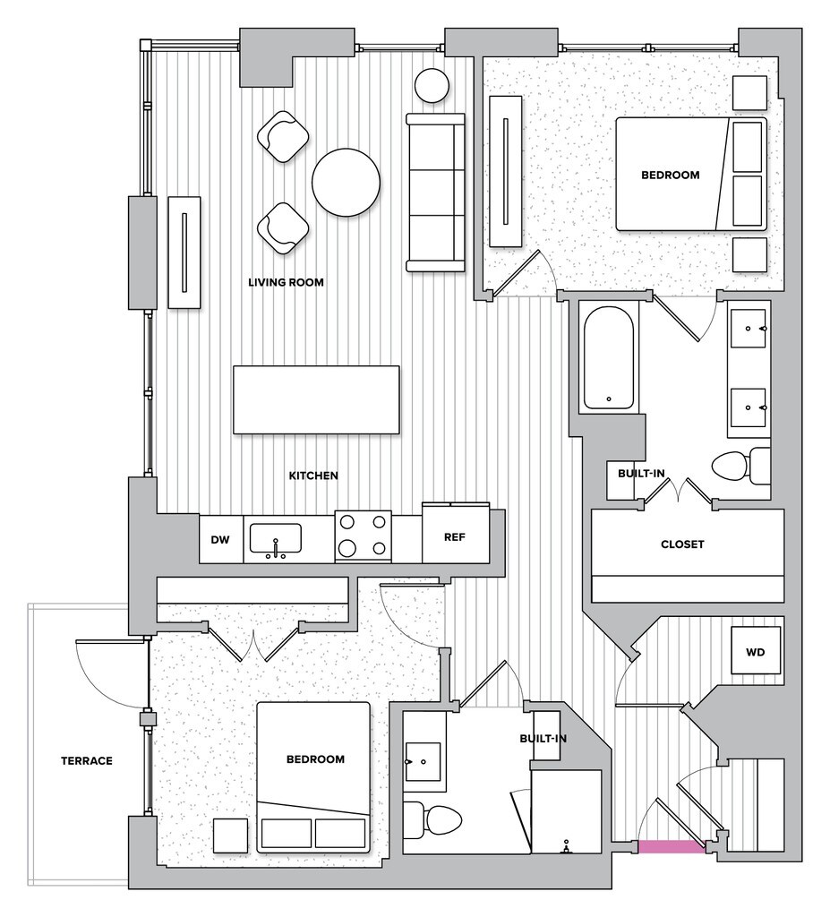 Apartment Model: Rosedale 2 (B02)From $2,6661 Bedroom, 1 Bath, 875 sq ftAvailable October 31, 2025![]()