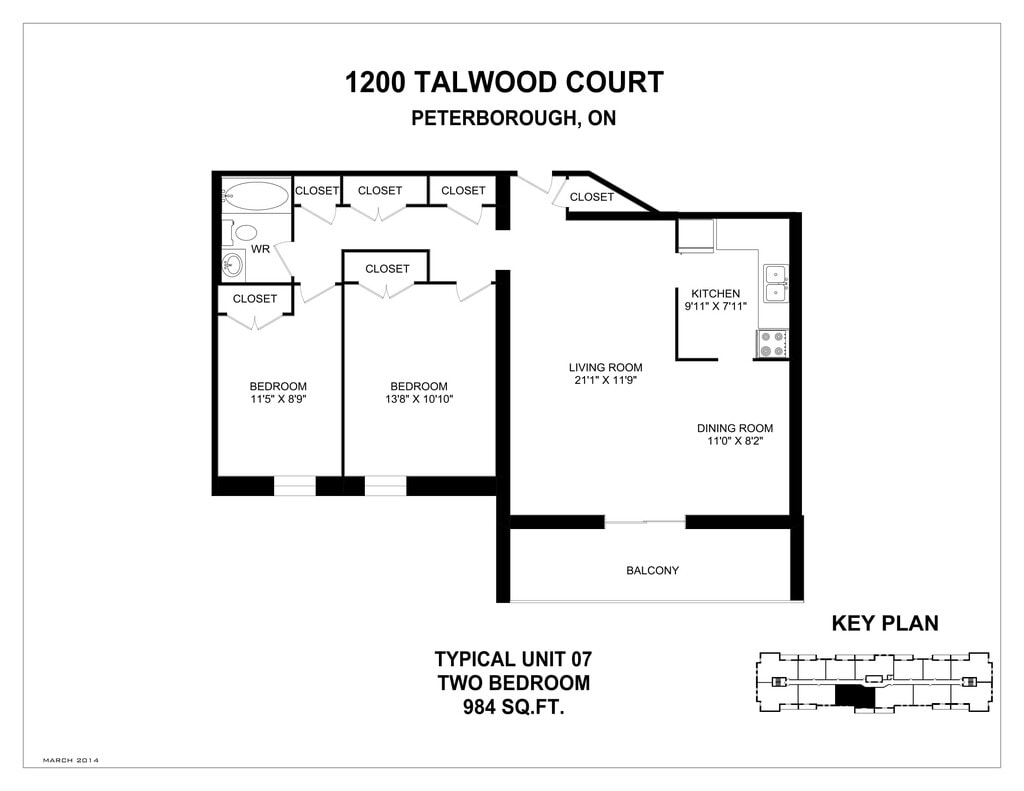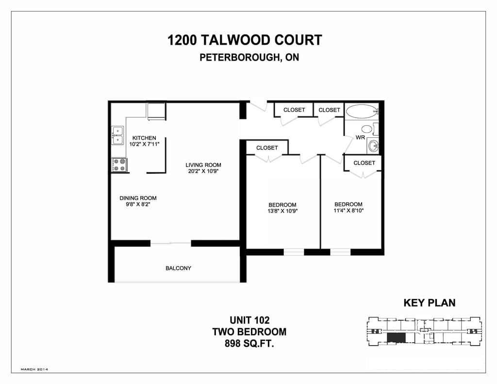 Enjoy this quiet, residential, Peterborough neighbourhood when you make 1200 Talwood Court your next home. This Peterborough apartment offers residents studio, 1, 2, and 3 bedroom suites to choose from. Benefit from being surrounded by green space and you are a short 10-minute commute downtown by car or bus to enjoy everything Peterborough has to Enjoy both Kinsmen park and civic centre located across the street. Its close proximity to Fleming College is convenient for attending students. The Kingswood I is a great location to make your next home in Peterborough. Rental ProcessWe are open for business and have refined our online rental process. View our 360-degree virtual tours, which give a general sense of unit layouts and finishes. We also encourage you to schedule a personal showing with our leasing specialist who would be happy to safely tour you through amenities and available suites. Online Payments and CommunicationsProperty Vista resident portal is available to ensure the ease of rental payments, maintenance requests, and communication with property management – all accessible online from your personal device.*Pricing, availability, and incentives are subject to change. Conditions apply. Suite features may vary. Images and virtual tours may not reflect actual suite finishes. E. & O.E.** Sterling Karamar Property Management is committed to providing an exceptional leasing experience. We do not request a fee to book a tour or a deposit to reserve a suite.