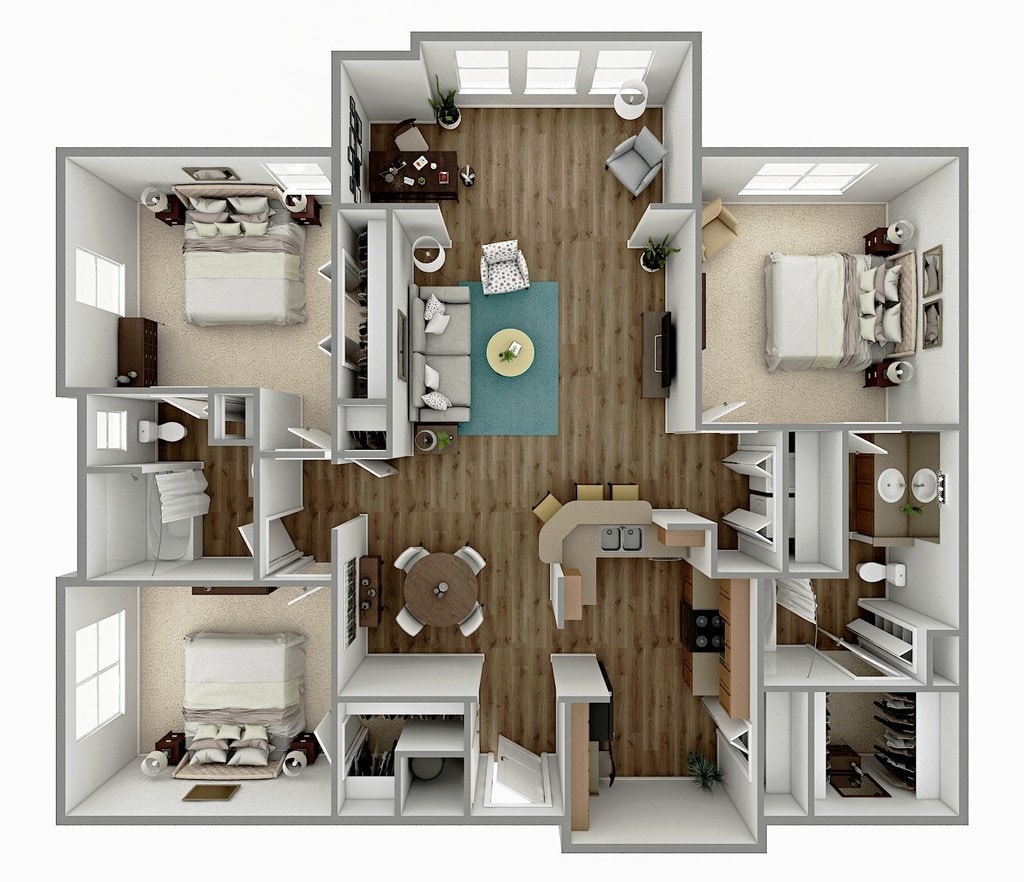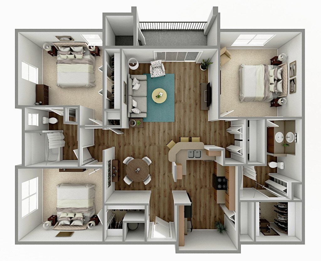 1 Bed, 1 Bath, 886 sq ftAvailable NowLargest 1 BedroomThis is the largest 1 Bedroom at this PropertyModel Gallery