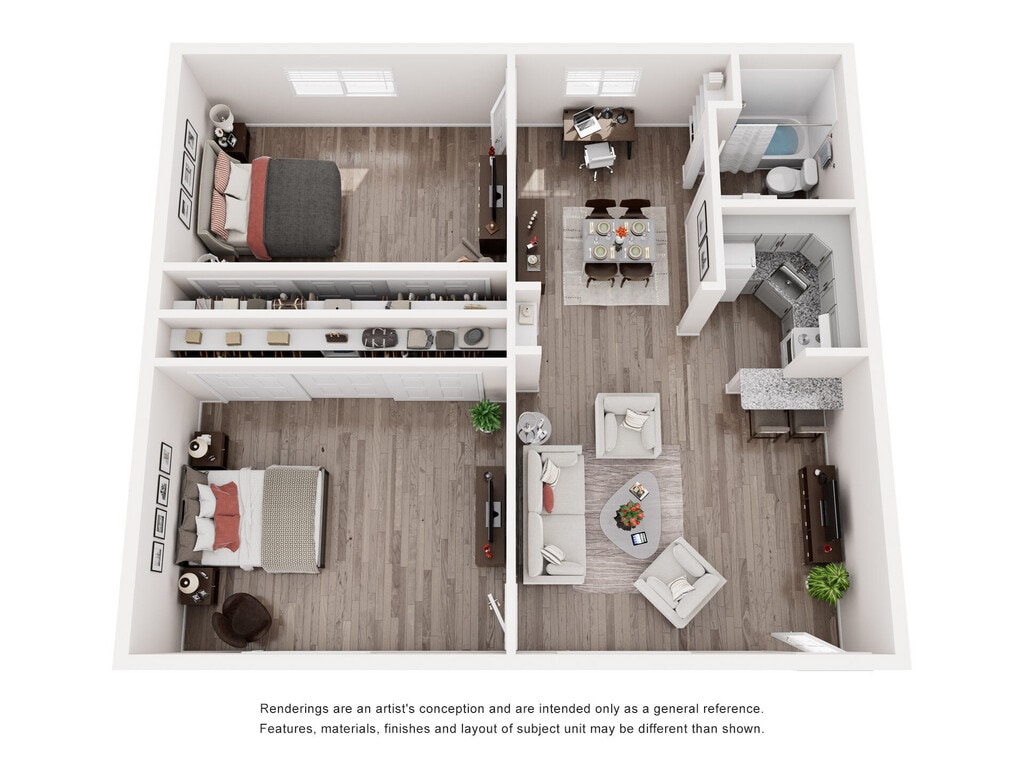 2 Beds, 1 Bath, 850 sq ftModel Gallery