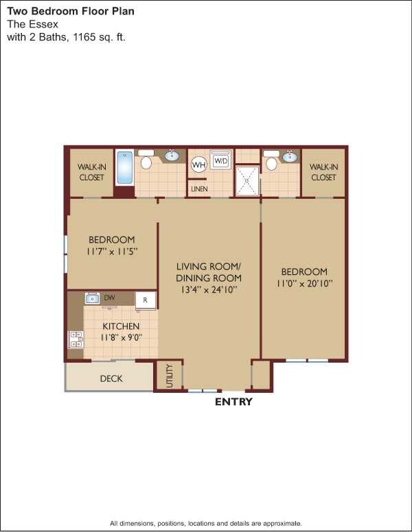 Apartment Model: $2.41/sq.ft. - The EssexFrom $2,8102 Bedroom, 2 Bath, 1165 sq ftUnavailable$2.41/sq.ft. - The Essex - Floorplan 1