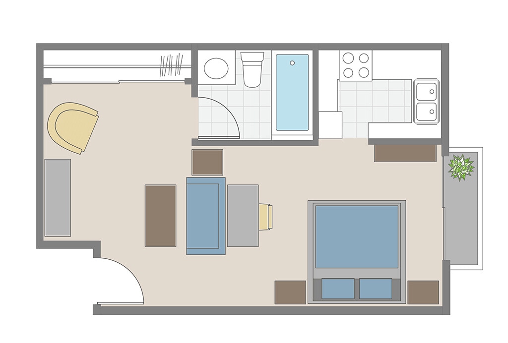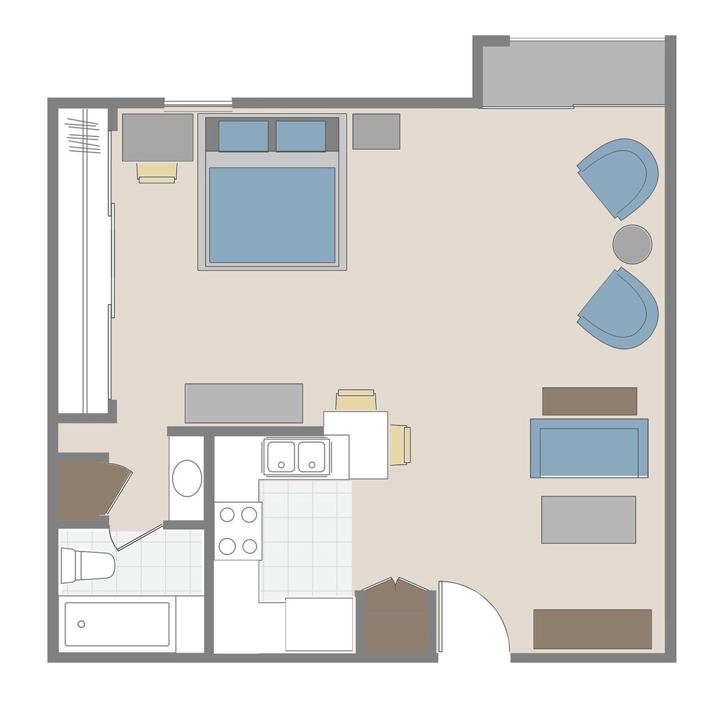 Apartment Model: Studio BK$2,395Studio, 1 Bath, 545 sq ftAvailable Now![]() - Studio BK - Floorplan 1