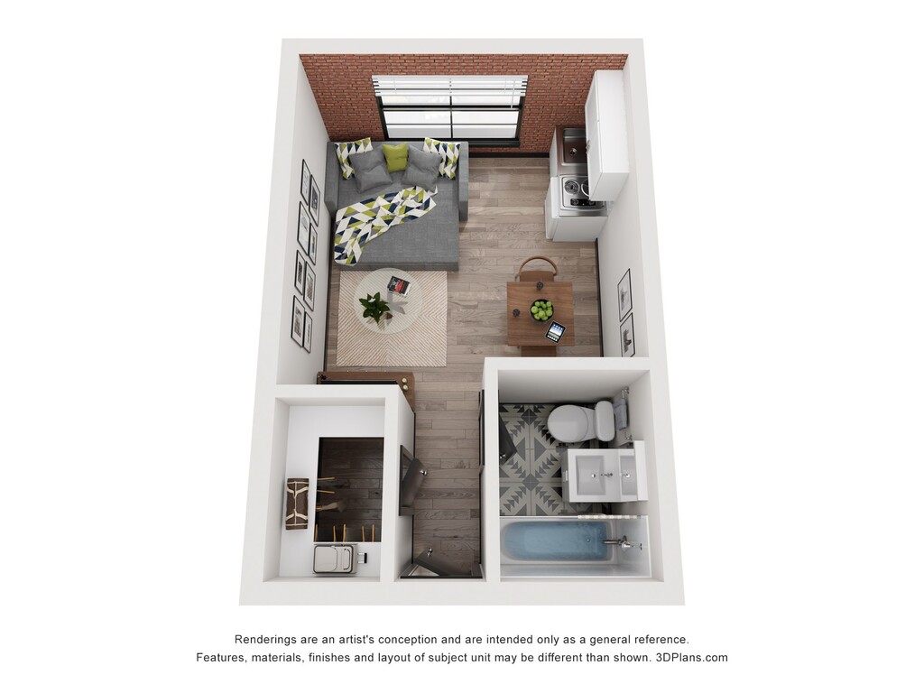 Studio, 1 Bath, 250 sq ftAvailable NowModel Gallery