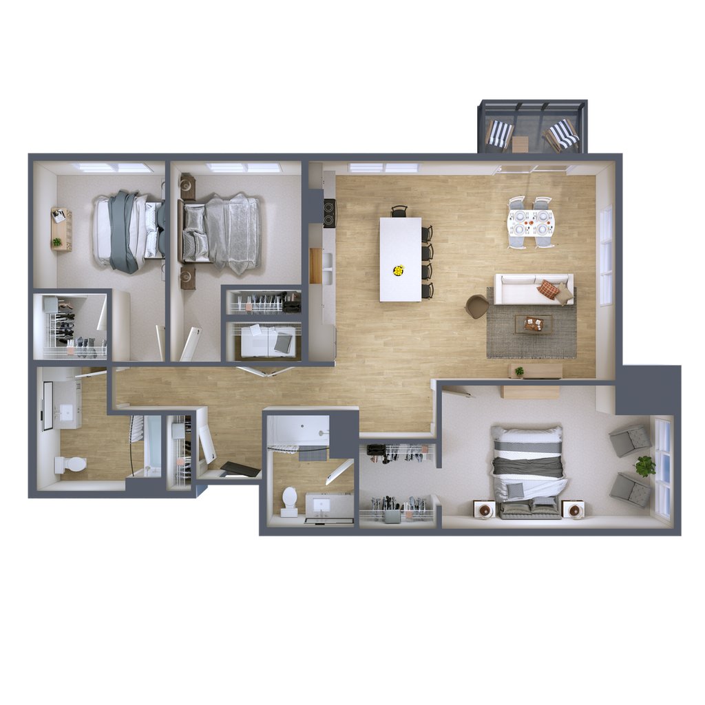 Dylan (3-0) - Image 10 Apartment Unit: 205Apartment Model: Dylan (3-0)$2,0402 Bedroom, 2 Bath, 1057 sq ftAvailable Now3 Bedrooms