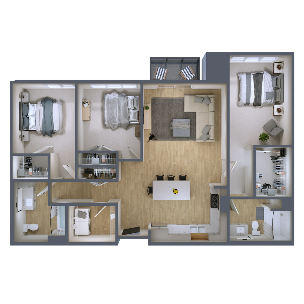 - 3 Bedrooms- Huck (4-3)- $2,5953 Beds, 2 Baths, 1370 sq ftPlus FeesAvailable Now- Model Gallery- Photos- Availability Details- Price - Availability Date - Unit - Sq Ft - Deposit - $2,595 - Available Now - 318 - 1370 - $500 - Unit 318 Amenities and Features- Unique Features- Courtyard View