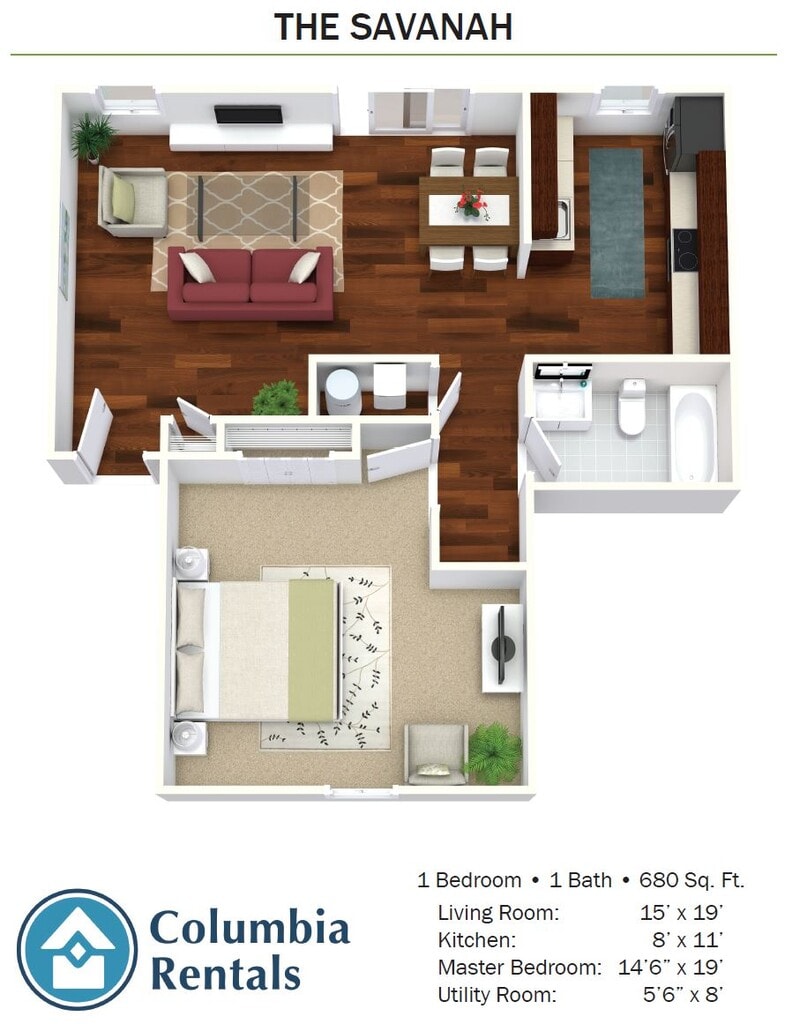 | Columbia 1 Bedroom Apartments | $1,365 | $625 | $2,150 |