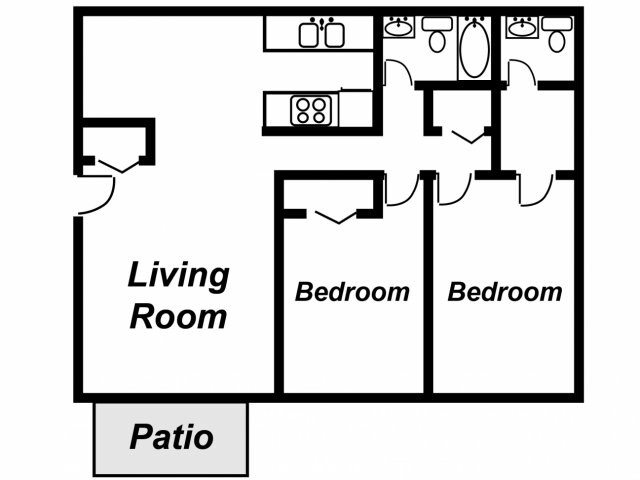 2 Bedroom, 1 Bath - Floorplan 2 2 Bedroom, 2 Bath (New)