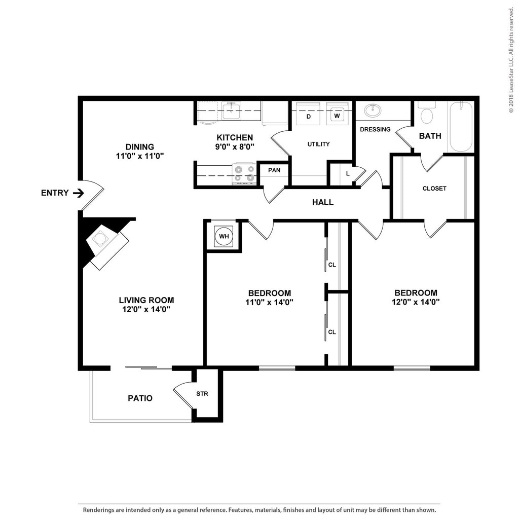 2 Beds, 1 Bath, 1000 sq ftAvailable NowModel Gallery