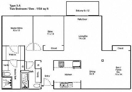 Apartment Model: Two Bedroom Two Bath + DenFrom $1,3952 Bedroom, 2 Bath, 1154 sq ftUnavailableTwo Bedroom Two Bath + Den - Floorplan 1 3 Bedrooms