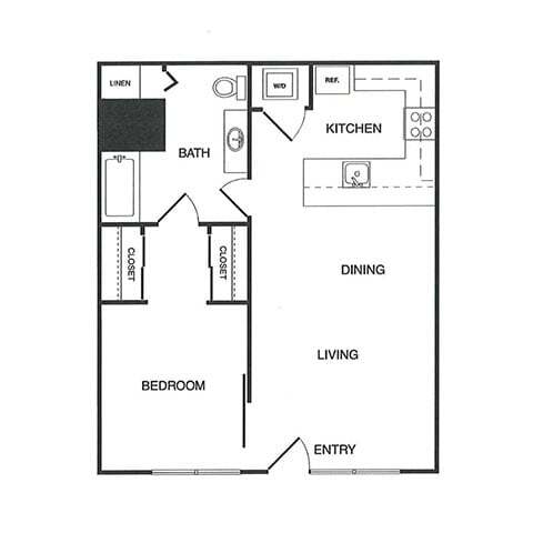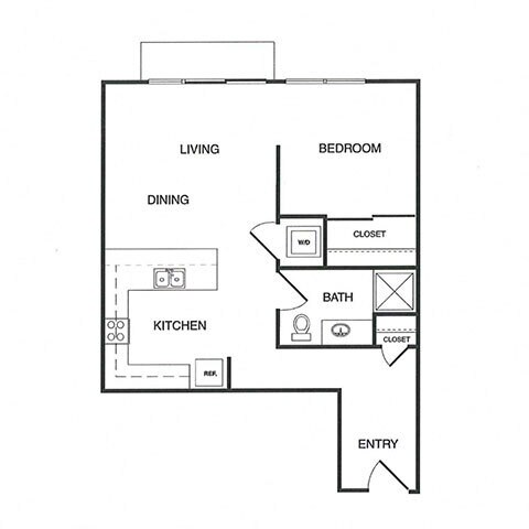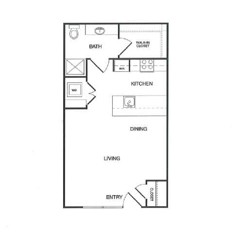 Studio A - Floorplan 1 Apartment Unit: 616SApartment Model: Studio A$1,595Studio, 1 Bath, 445 sq ftAvailable NowStudio D