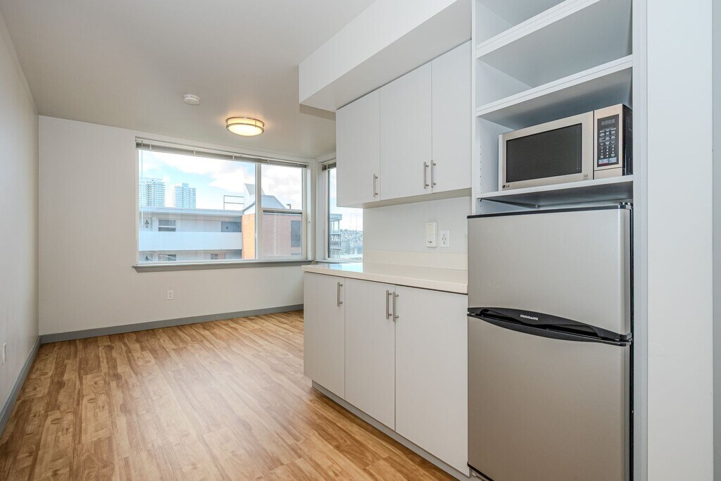 Welcome to Kulle Urban Living, a contemporary apartment community designed for efficient, stylish city living in Seattle’s vibrant Capitol Hill neighborhood. Located at 1815 Bellevue Ave, Seattle, WA 98122, Kulle blends modern design with smart functionality—perfect for students, professionals, and urban explorers alike. The name Kulle, Swedish for “hill,” reflects both the property’s Nordic-inspired simplicity and its prime Capitol Hill location. Opened in 2016, Kulle Urban Living offers thoughtfully designed micro-studios and lofted studios that maximize space without compromising comfort. Each apartment features hardwood-style flooring, large windows for abundant natural light, private bathrooms, and efficient kitchenettes equipped with stainless steel appliances, including a refrigerator and microwave. Individual heating systems ensure year-round comfort. Residents enjoy a variety of community amenities tailored to urban lifestyles, including a breathtaking rooftop deck with panoramic views of the Seattle skyline, Space Needle, and Lake Union—an ideal spot to relax or socialize. Additional conveniences include secure intercom-controlled access, on-site laundry, dedicated package lockers, bike storage, and a welcoming community lounge with Wi-Fi. Highly sought after by students, Kulle Urban Living is just minutes from Seattle University and offers easy access to the University of Washington, public transit, nightlife, dining, and local culture. Kulle Urban Living is where modern design meets effortless city living—right in the center of it all.