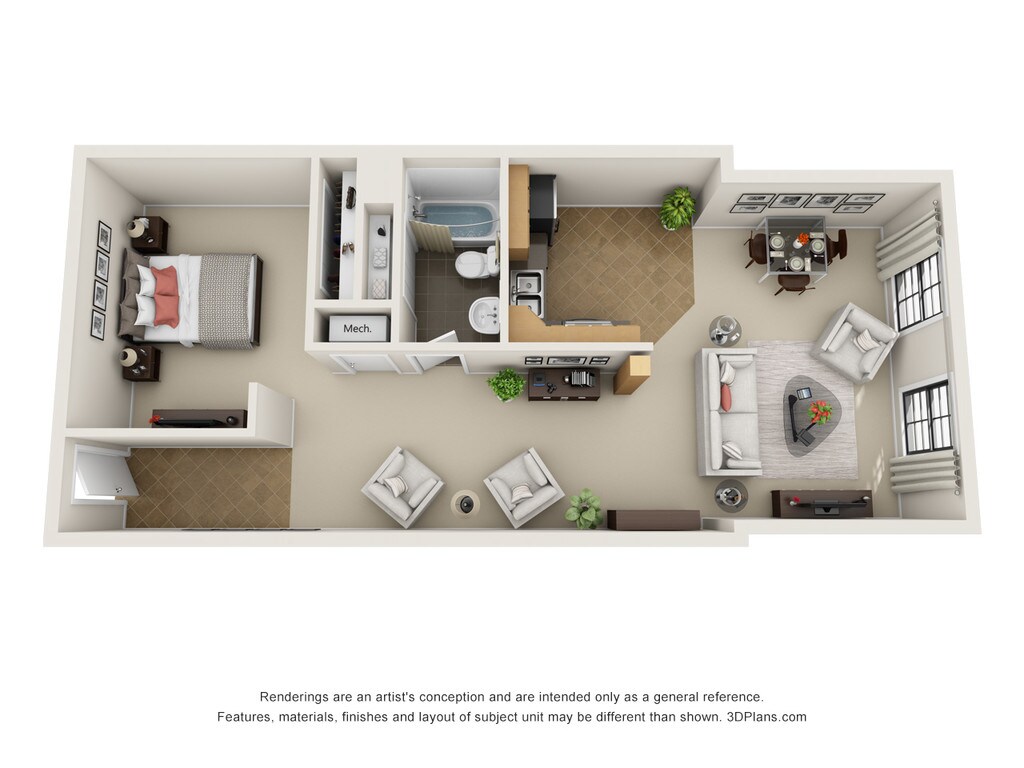 Studio, 1 Bath, 975-1020 sq ftAvailable NowModel Gallery