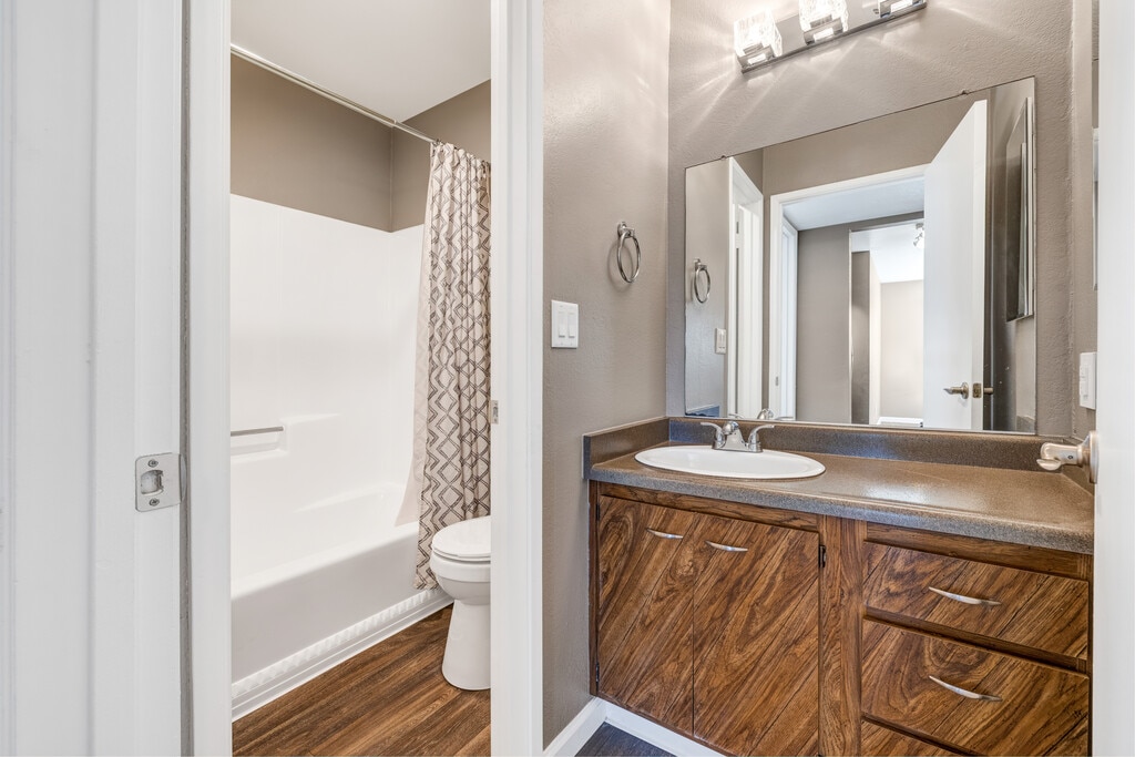 - Double vanities in select units