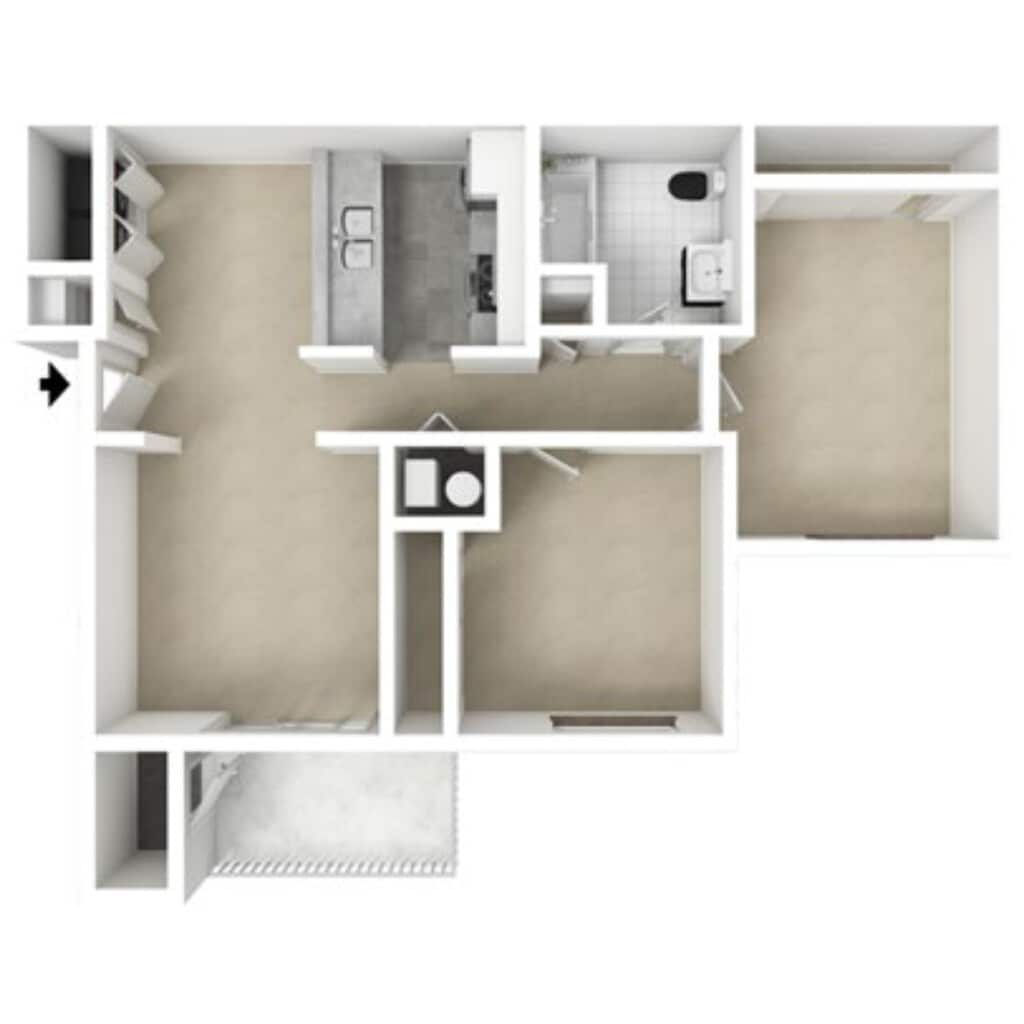 2 Beds, 1 Bath, 833 sq ftModel Gallery