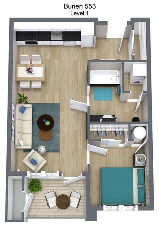 1 Bed, 1 Bath, 553 sq ftAvailable NowModel Gallery