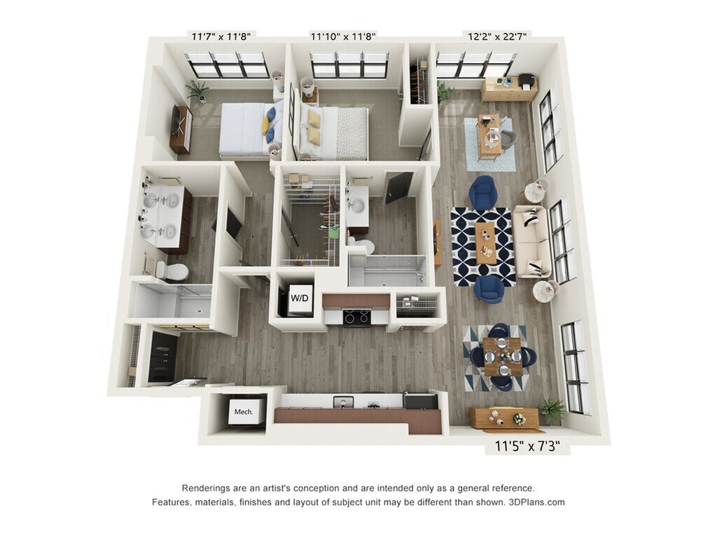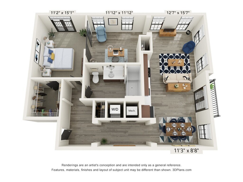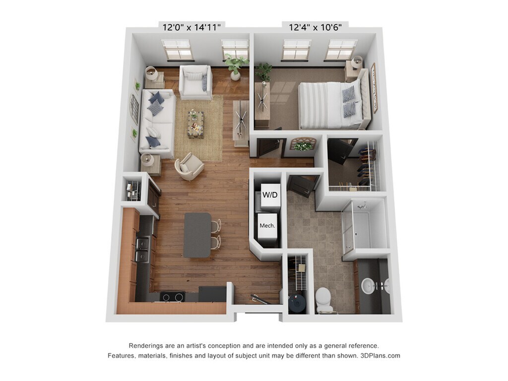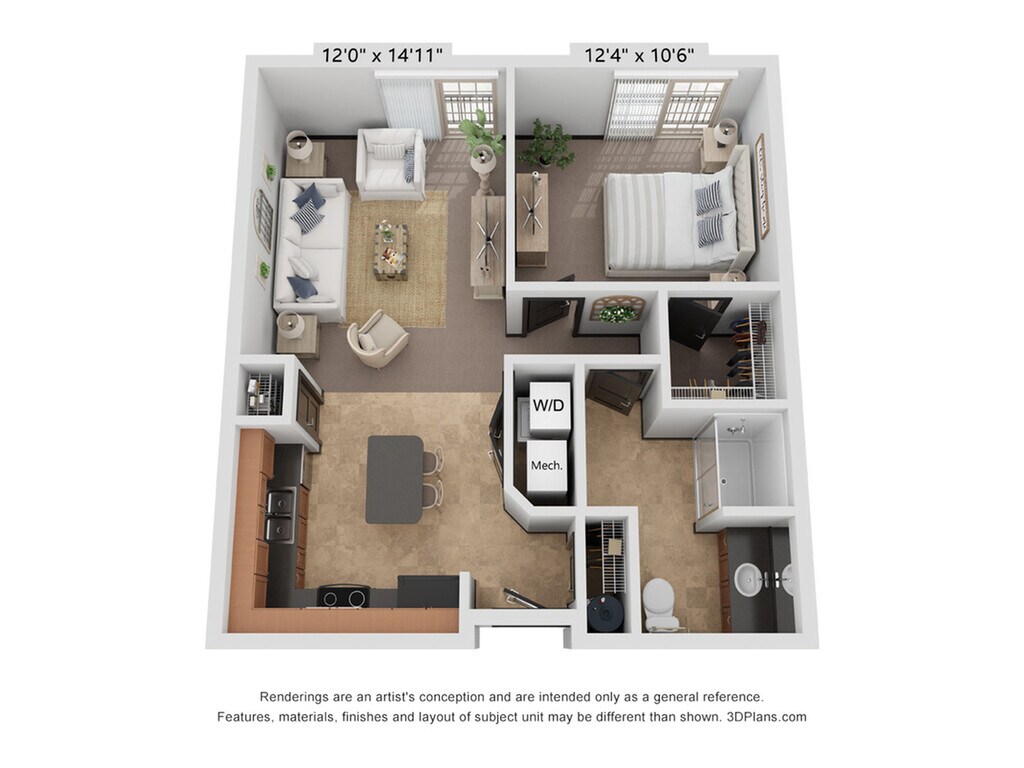 Apartment Model: A1.2 - MTNFrom $1,1471 Bedroom, 1 Bath, 683 sq ftAvailable Now![]()