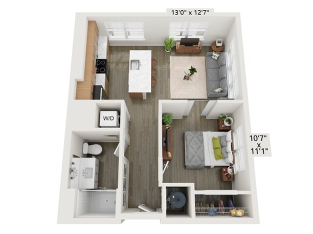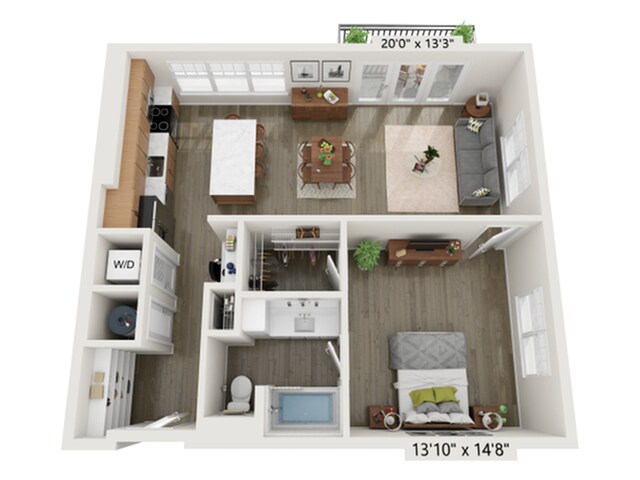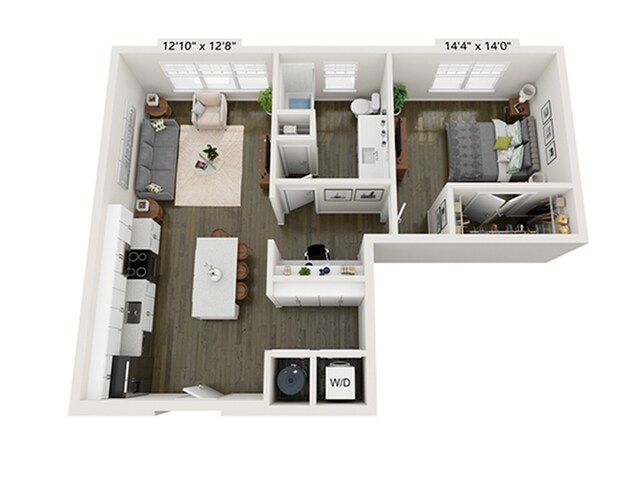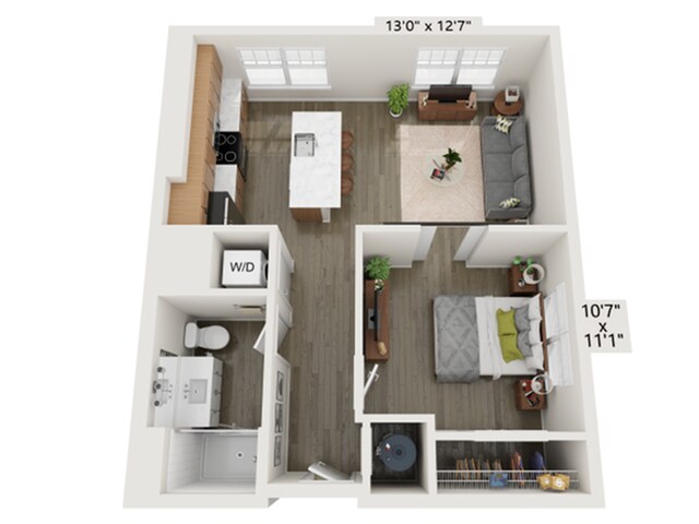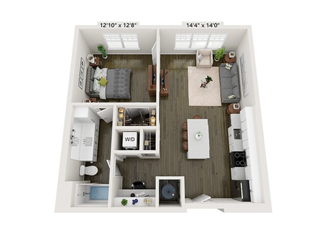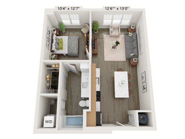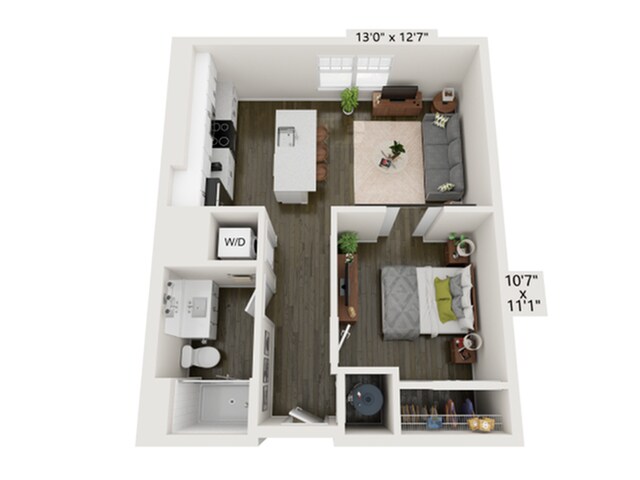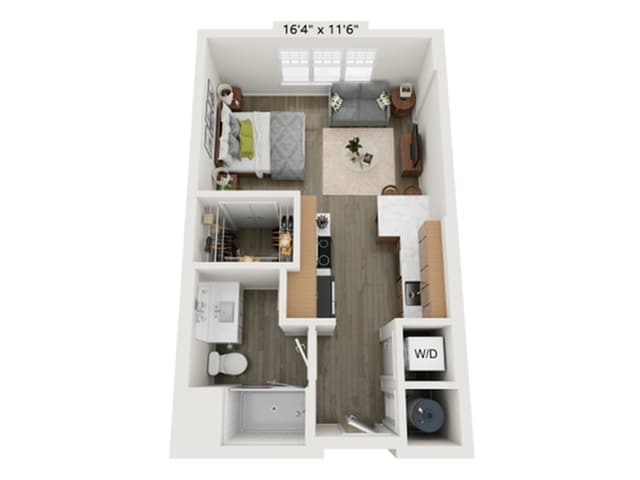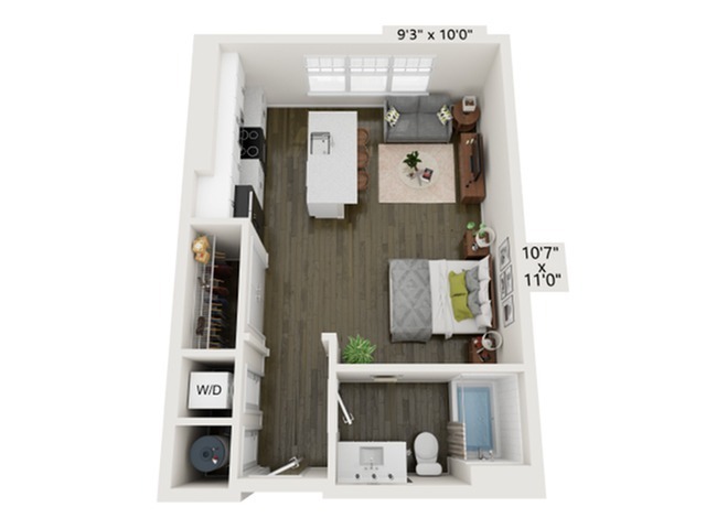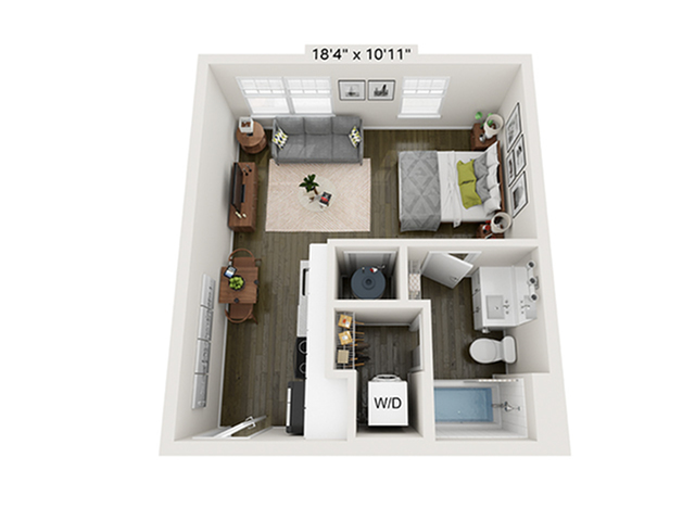 Studio D - Floorplan 1 Apartment Unit: C-301Apartment Model: Studio D$1,642Studio, 1 Bath, 558 sq ftAvailable December 31, 2025Studio A
