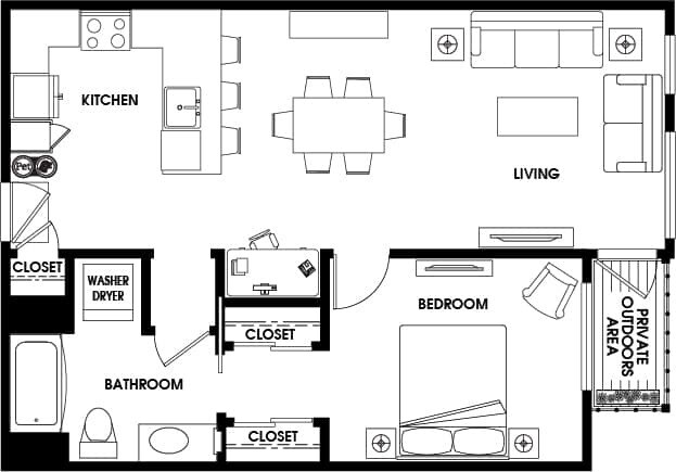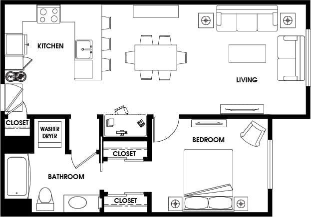 Urban One Bedroom U1 - Floorplan 1 Apartment Unit: 308Apartment Model: Urban One Bedroom U1$1,7951 Bedroom, 1 Bath, 615 sq ftAvailable Now![]()