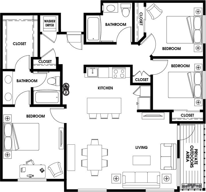 1 Bed, 1 Bath, 825 sq ftAvailable NowLargest 1 BedroomThis is the largest 1 Bedroom at this PropertyModel Gallery
