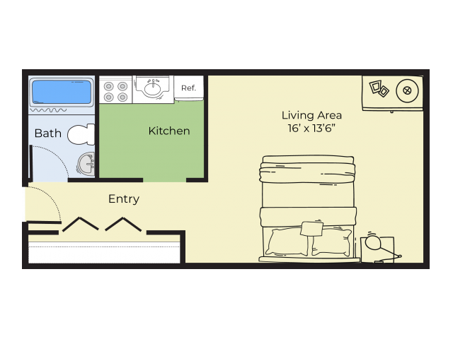 Apartment Model: StudioStudio, 1 Bath, 350 sq ftUnavailable![]()