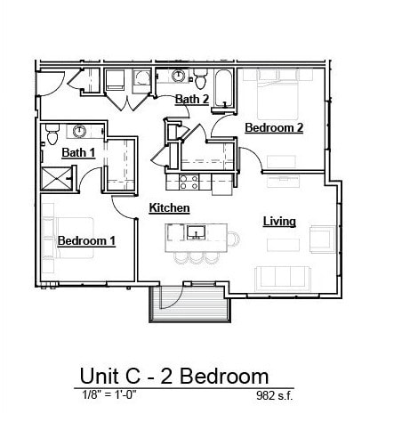 2 Beds, 2 Baths, 982 sq ftModel Gallery