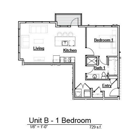1 Bed, 1 Bath, 729 sq ftModel Gallery