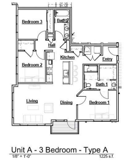 3 Beds, 2 Baths, 1225 sq ftModel Gallery