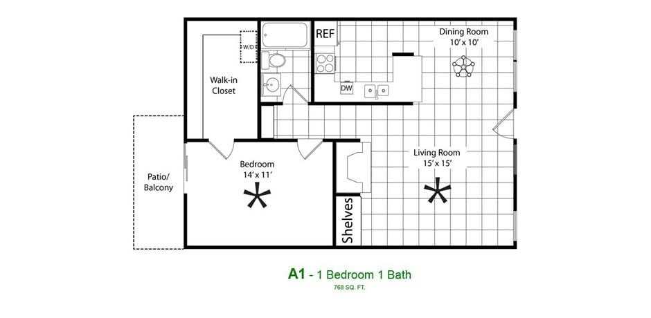 Apartment Model: A1From $1,2081 Bedroom, 1 Bath, 757 sq ftAvailable Now![]()