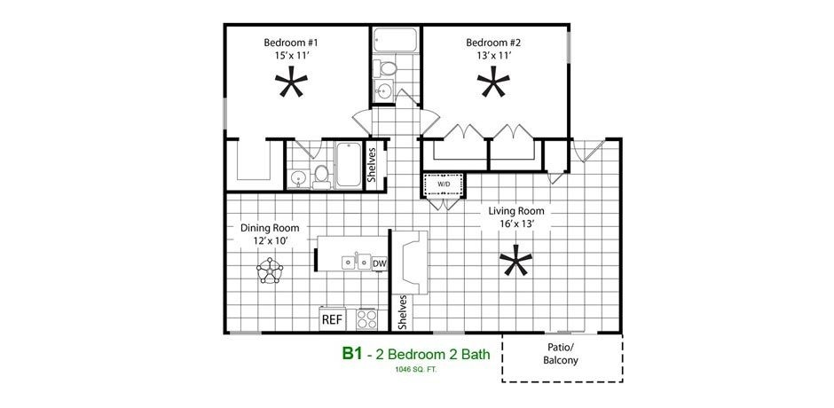 B2 - Floorplan 1 Apartment Unit: 225Apartment Model: B2$1,7222 Bedroom, 2 Bath, 1097 sq ftAvailable November 8, 2025Floorplan B1