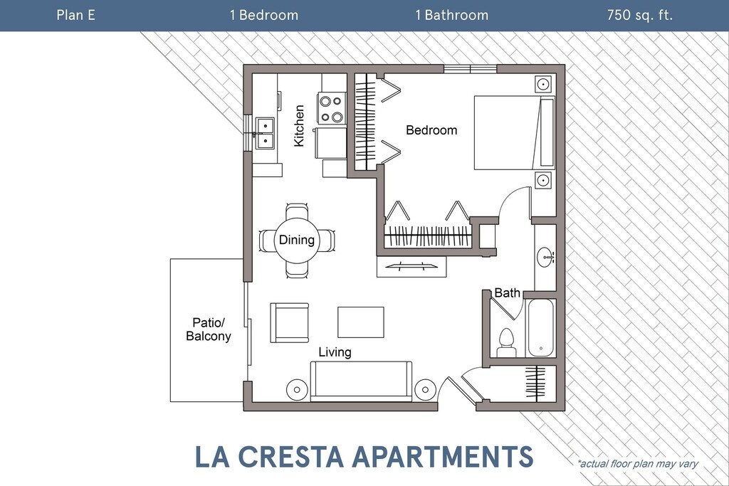 Plan E - 1 Bedroom, 1 Bath - Floorplan Apartment Unit: 217-207Apartment Model: Plan E - 1 Bedroom, 1 Bath1 Bedroom, 1 Bath, 750 sq ftAvailable Now![]()