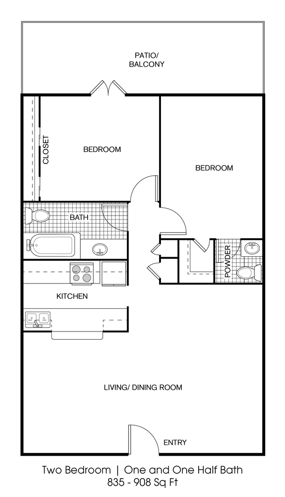 2 Beds, 1 Bath, 792 sq ftAvailable NowModel Gallery
