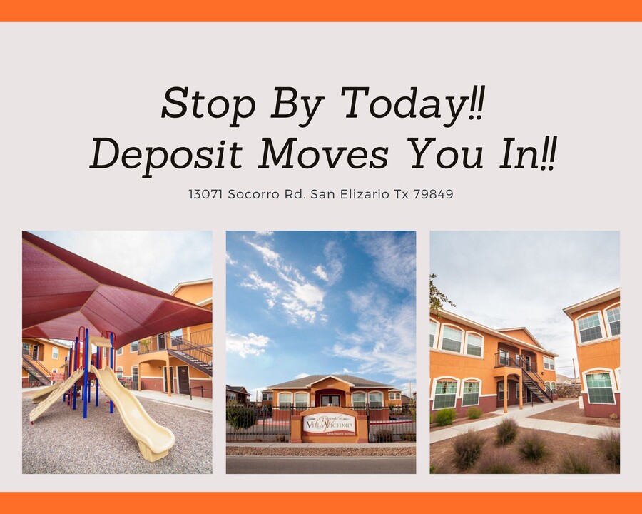 Welcome to La Hacienda at Villa Victoria, San Elizario's premier luxury apartment community. Attention to detail makes coming home to Villa Victoria a joy and convenience. With a state of the art clubhouse with gaming area, TV lounge, and business center, you'll enjoy a sense of community! Wood inspired flooring, black appliances with microwave, 9 foot ceilings and many other high quality finishes make Villa Victoria the top choice in apartment living. Enjoy the outdoors? Spend your free time enjoying our sparkling pool or playground area. Come see all that Villa Victoria has to offer today!