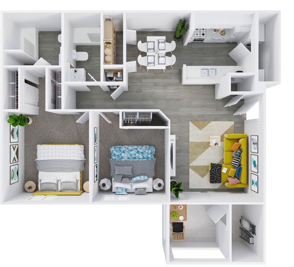 2 Beds, 2 Baths, 886 sq ftModel Gallery