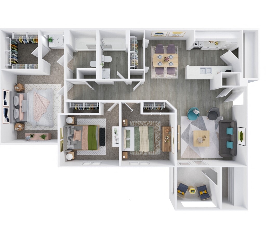 Apartment Model: Three Bedroom Two BathroomFrom $1,2503 Bedroom, 2 Bath, 1056 sq ftAvailable NowThree Bedroom Two Bathroom - Floorplan 1 Apartment Unit: 03BApartment Model: Three Bedroom Two Bathroom$1,2503 Bedroom, 2 Bath, 1056 sq ftAvailable NowApartment Unit: 03EApartment Model: Three Bedroom Two Bathroom$1,2993 Bedroom, 2 Bath, 1056 sq ftAvailable NowApartment Unit: 03HApartment Model: Three Bedroom Two Bathroom$1,3253 Bedroom, 2 Bath, 1056 sq ftAvailable Now