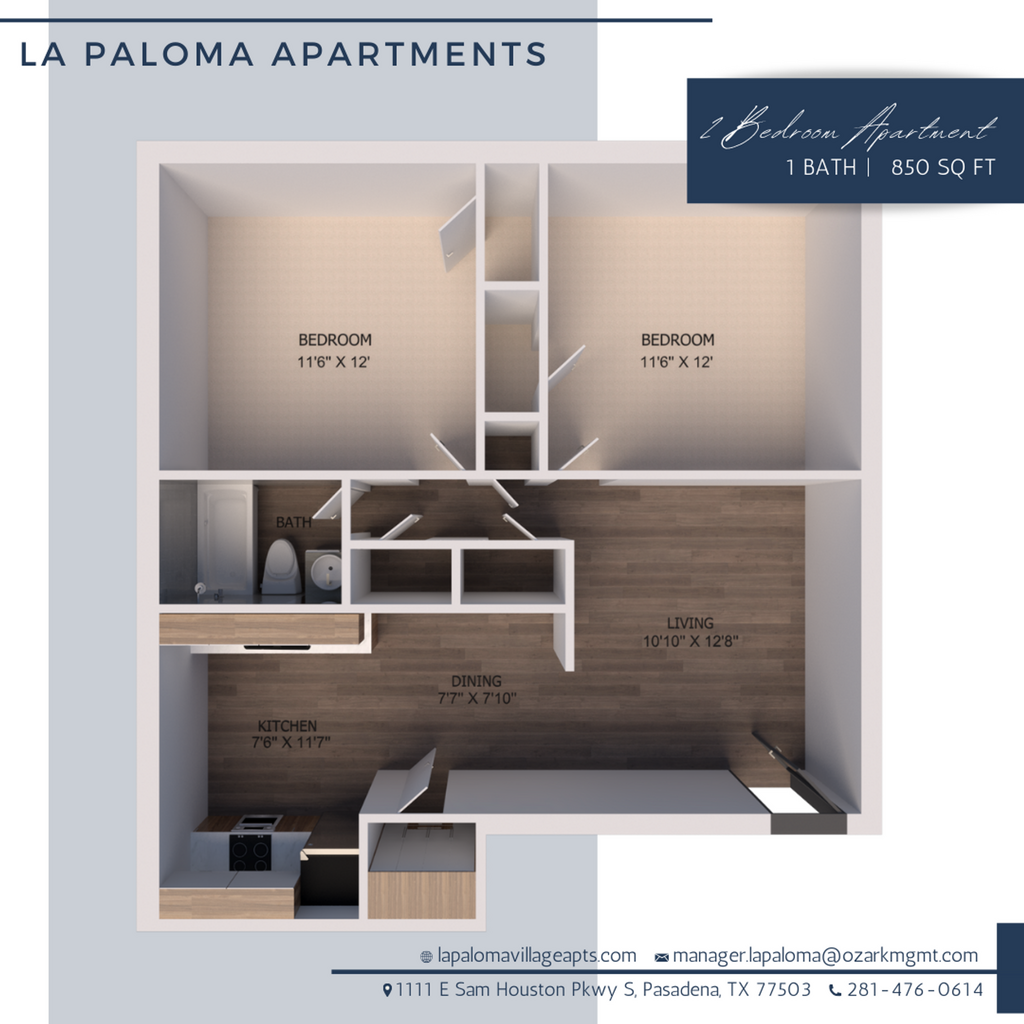 La Paloma Village Apartments is located in the Southeast Houston Neighborhood and 77503 Zip code of Pasadena, TX. This community is professionally managed by Ozark Management