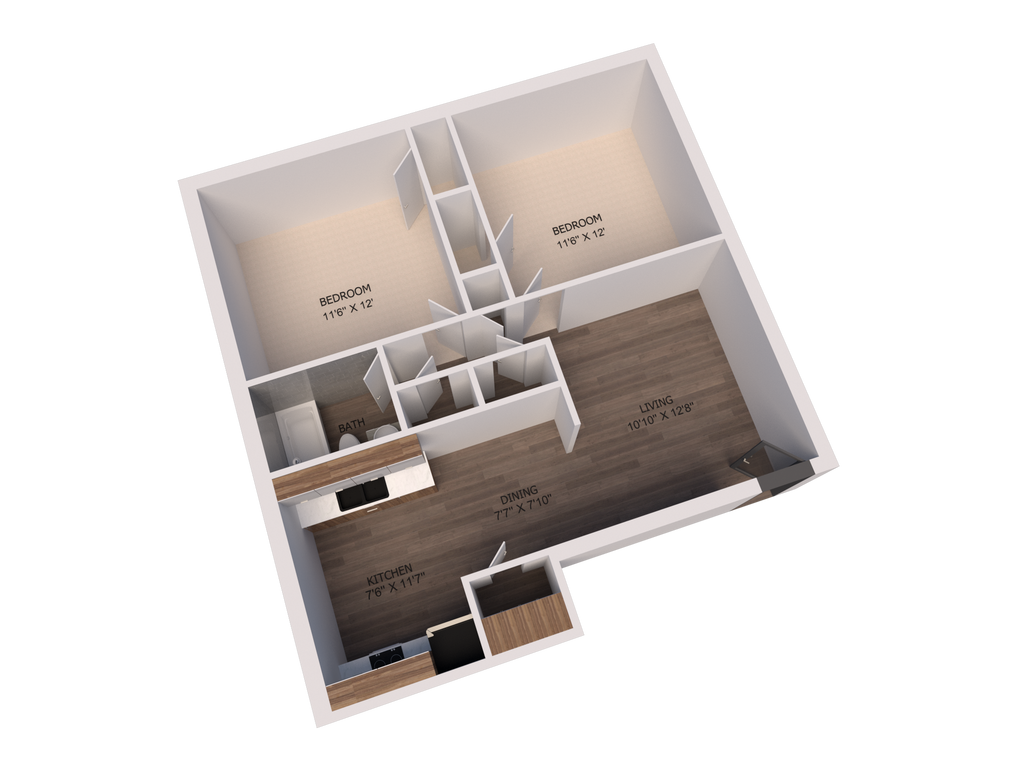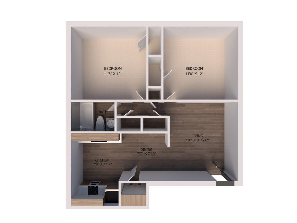 2 Beds, 1 Bath, 850 sq ftAvailable NowModel Gallery