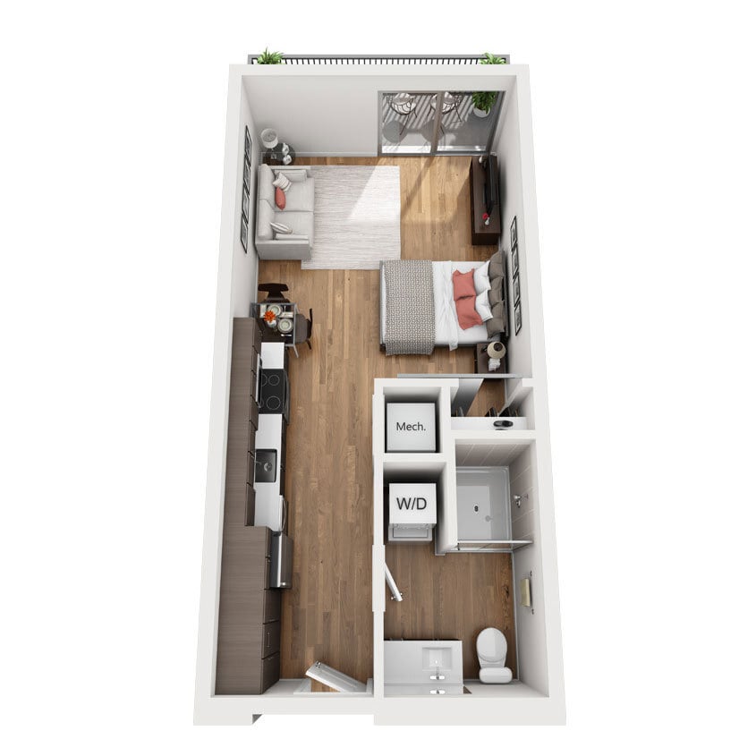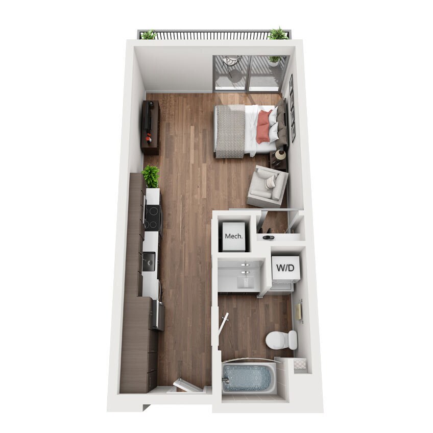 Studio, 1 Bath, 501 sq ftAvailable NowModel Gallery