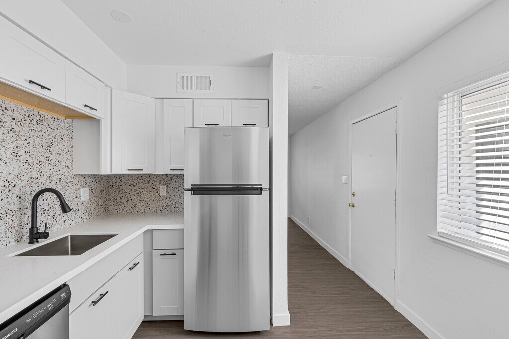Make La Posada Apartments your new home! You will love the tranquil surroundings of this quiet neighborhood. La Posada is located just minutes away from the Downtown Arts District, shopping centers , museums, universities and within 10 Minutes of the world famous Las Vegas Stip. Currently under new management, all apartment homes are being renovated and will offer in-home washer and dryer, spacious closets throughout, and an eat-in kitchen. Our community features assigned parking for each household. Coming Soon – community clubhouse and playground!