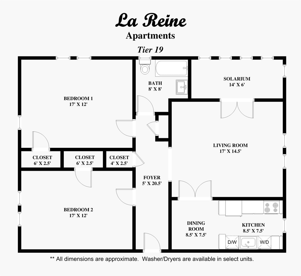 Studio to 2 Bedroom Apartments at La Reine Apartments currently range from $1,695 to $3,145