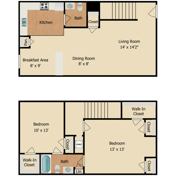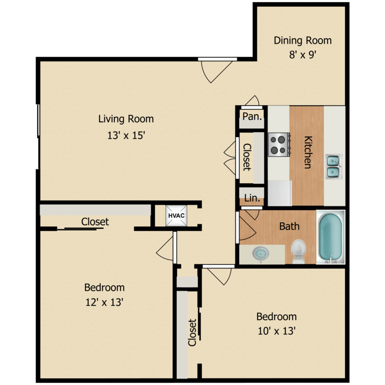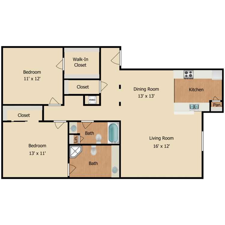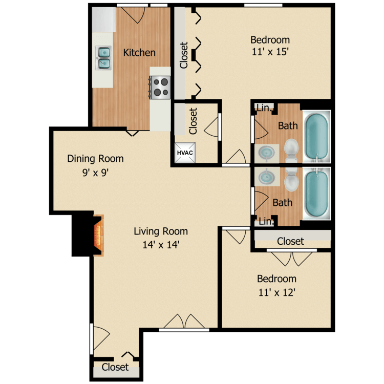 2 Beds, 1.5 Baths, 1156-1190 sq ftLargest 2 BedroomThis is the largest 2 Bedroom at this PropertyModel Gallery
