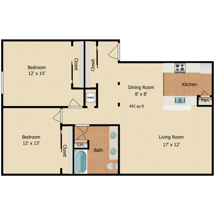 2 Beds, 1 Bath, 896 sq ftAvailability Details