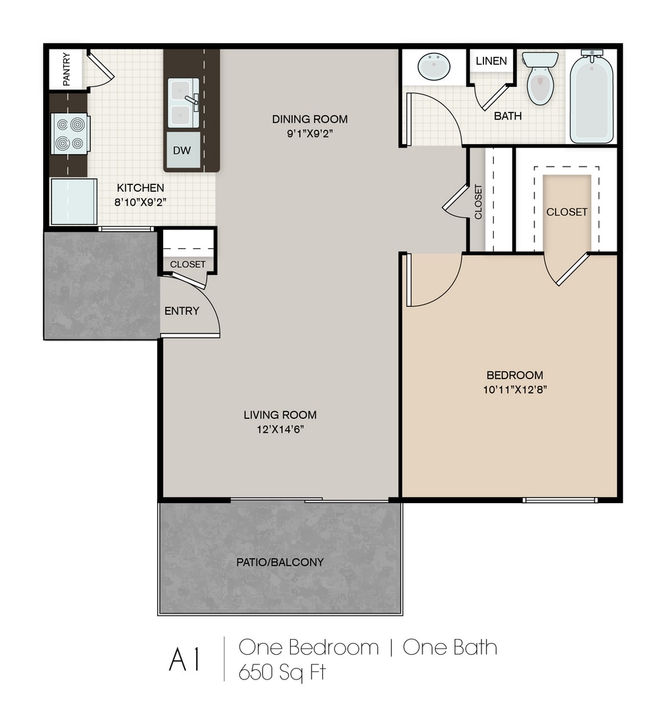 Apartment Model: A2-DCall For Rates1 Bedroom, 1 Bath, 650 sq ftUnavailableA2-D - Floorplan 1 B0-P