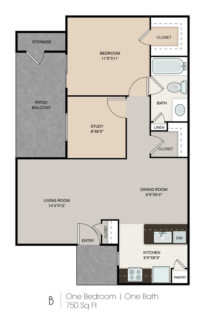 Apartment Model: B0-PCall For Rates1 Bedroom, 1 Bath, 750 sq ftUnavailableB0-P - Floorplan 1 2 Bedrooms