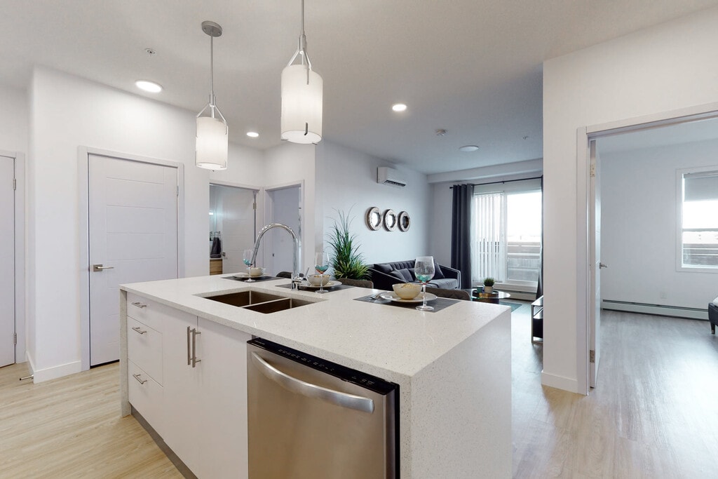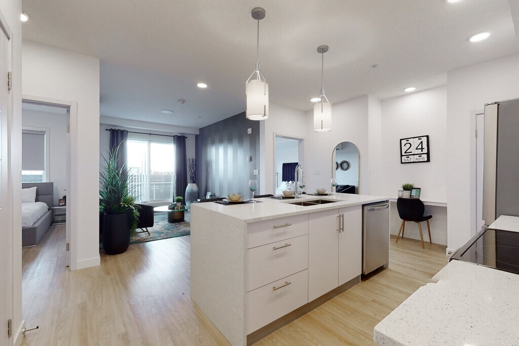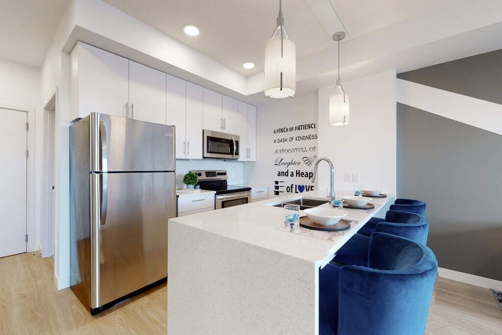 Located in the vibrant community of Keswick in South West Edmonton! La Vie means "The Life" in French: from in-suite designer finishes to on-site amenities chosen for comfort and convenience. When you live at La Vie, you get the "downtown" feeling. This newer building comes with oversized balconies, a fully-euipped fitness center, and Parcel Pending for secure deliveries. Suite Features : 9 foot ceilings throughout the property. Air conditioningin each unit. Full size stainless appliances (fridge, stove, dishwasher & range hood). Quartz countertops with back splash. Full sized washer and dryer in each unit. Soft close cupboards and drawers LED lighting. Luxury vinyl plank flooring throughout each unit. Keyless suite entry. Patio Barbeque