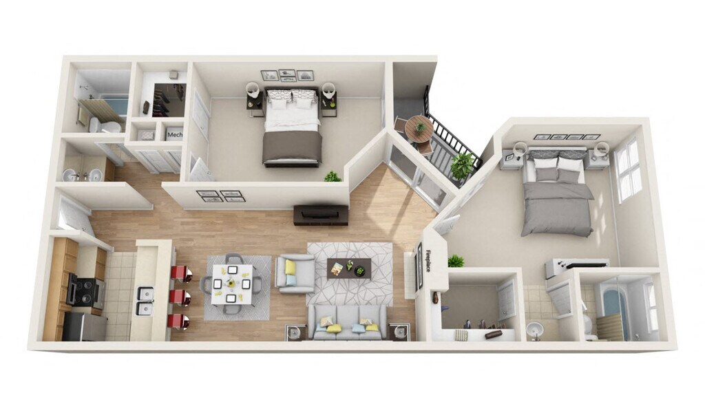 2 Beds, 2 Baths, 1067 sq ftAvailable NowLargest 2 BedroomThis is the largest 2 Bedroom at this PropertyModel Gallery