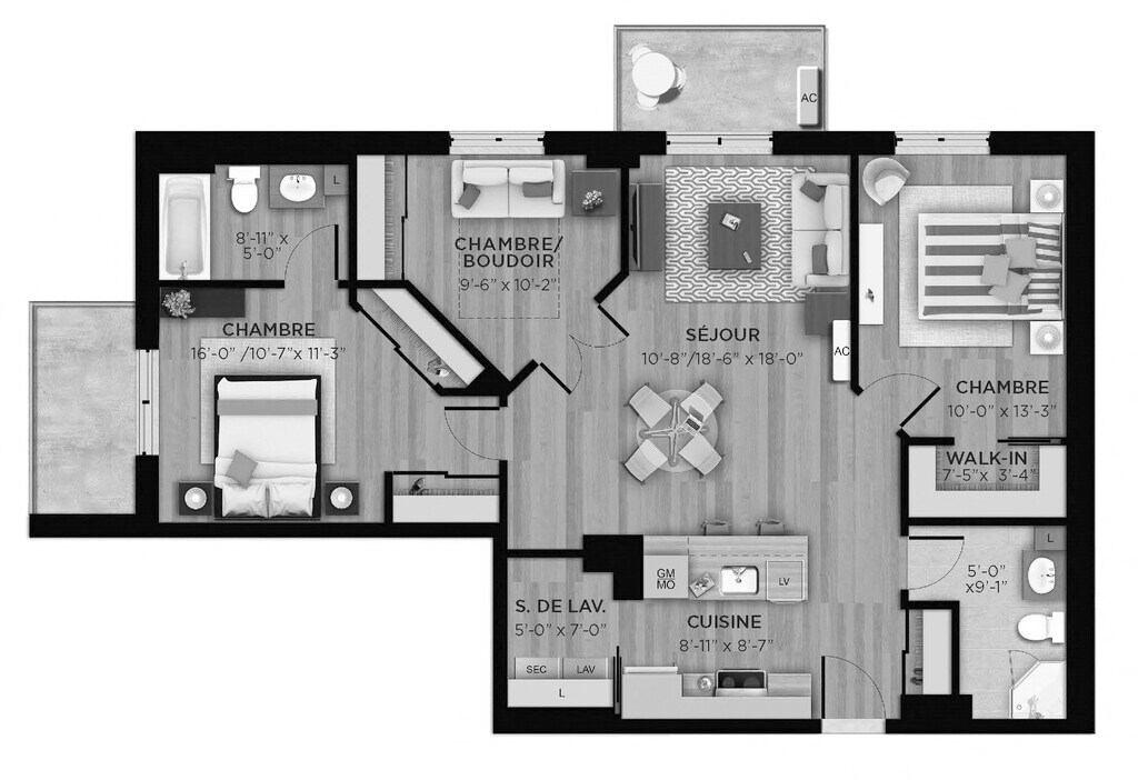 Apartment Model: 1 Bed 1 Bath L1 Bedroom, 1 Bath, 726 sq ftUnavailable![]()