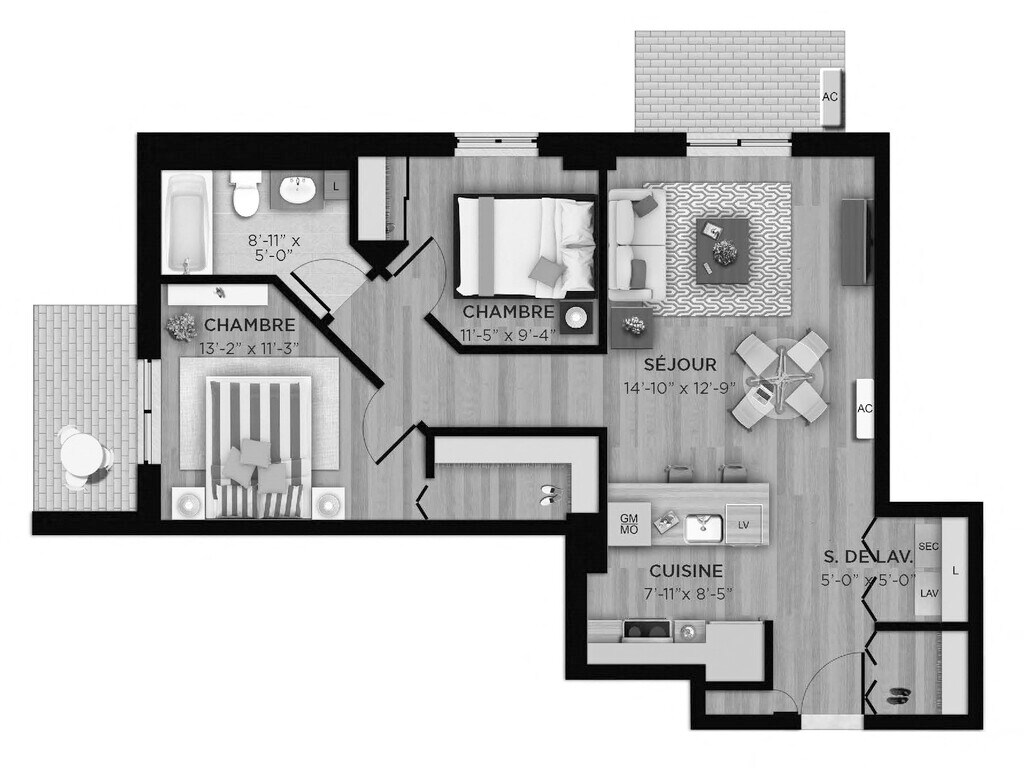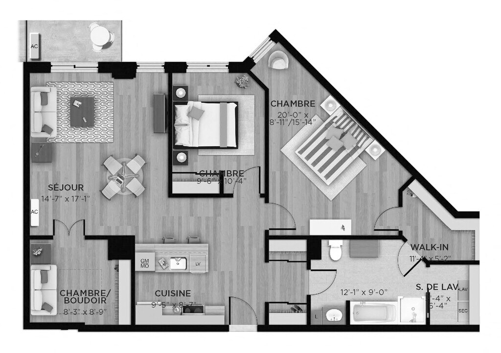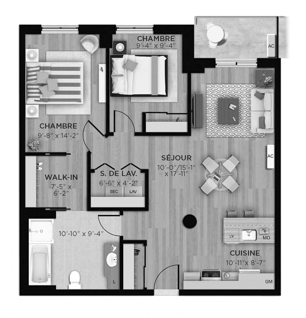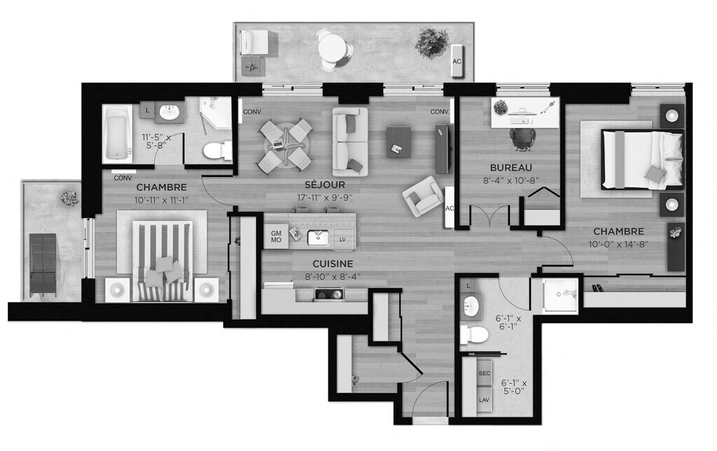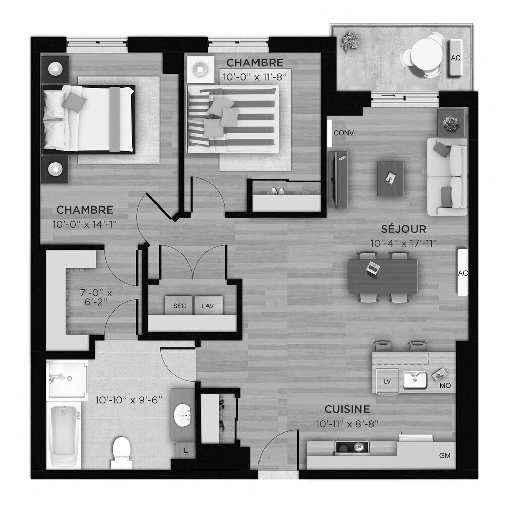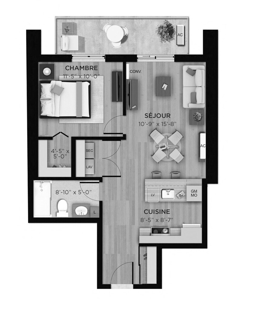 1 Bed, 1 Bath, 569 sq ftModel Gallery